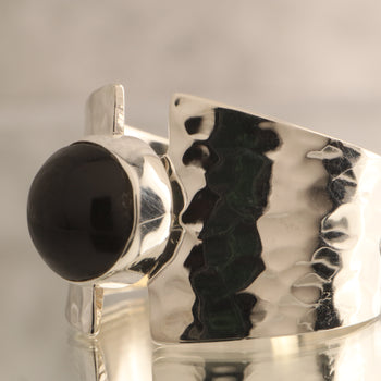 Midnight Echo - Over 7 Grams Of 925 Silver Hammered 925 Silver Solitaire Ring With Your Choice Stone