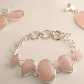 Alma Rosa - Rose Quartz Hand-Carved Rose Jewelry Set (Bracelet, Pendant, and Earrings)
